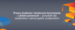 PORADNIK: Prawa studenta i skuteczne korzystanie z aktów prawnych SOS-prawa-studenta PORADNIK: Prawa studenta i skuteczne korzystanie z aktów prawnych – (pobierz PDF 479 KB) Poprzedni artykułPrawa studenta i skuteczne korzystanie z aktów prawnych – poradnik dla studentów i samorządów studenckichNastępny artykuł PUBLIKACJA: Zbiór najciekawszych kampanii informacyjnych oraz wskazówek do ich tworzenia